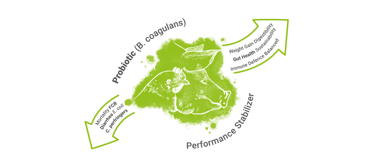 In swine and poultry production, especially E. coli-caused diarrhea and necrotic enteritis caused by C. perfringens has detrimental effects on growth, feed conversion, and overall health. This can result in high mortality rates and major economic losses in the global livestock industry. Subclinical infections are associated with chronic damage of the intestinal mucosal layer causing severe gut health issues, which lowers performance and reduces weight gain.