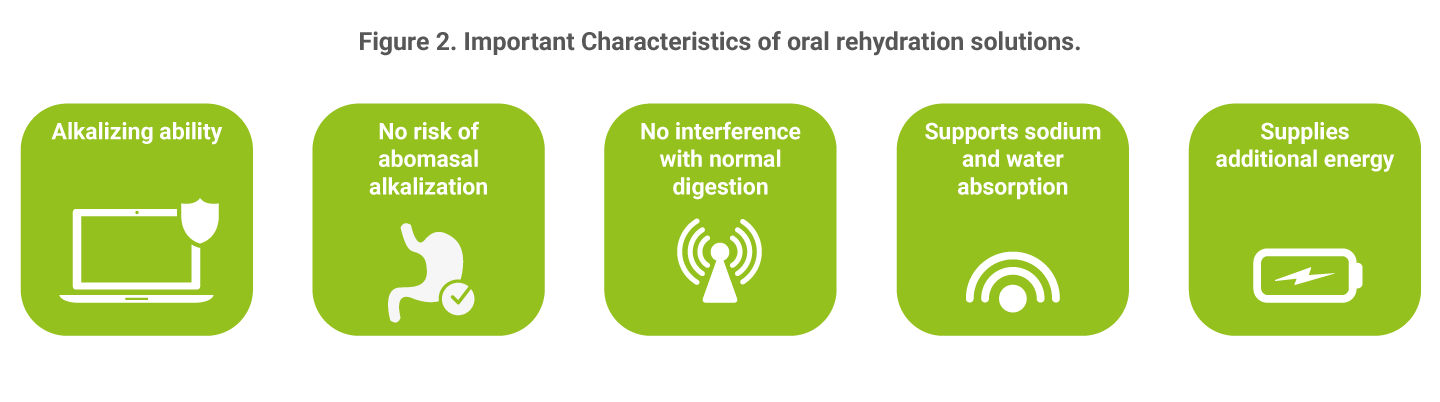 Calves with diarrhea not only have a reduced ability to absorb nutrients. They also have an increased demand for energy for immune function and intestinal epithelium repair. Increasing sodium absorption is one of the functions of an oral rehydration solution and cannot be achieved without an energy source. Therefore, oral rehydration solutions should provide an energy source—often in the form of sucrose or glucose.