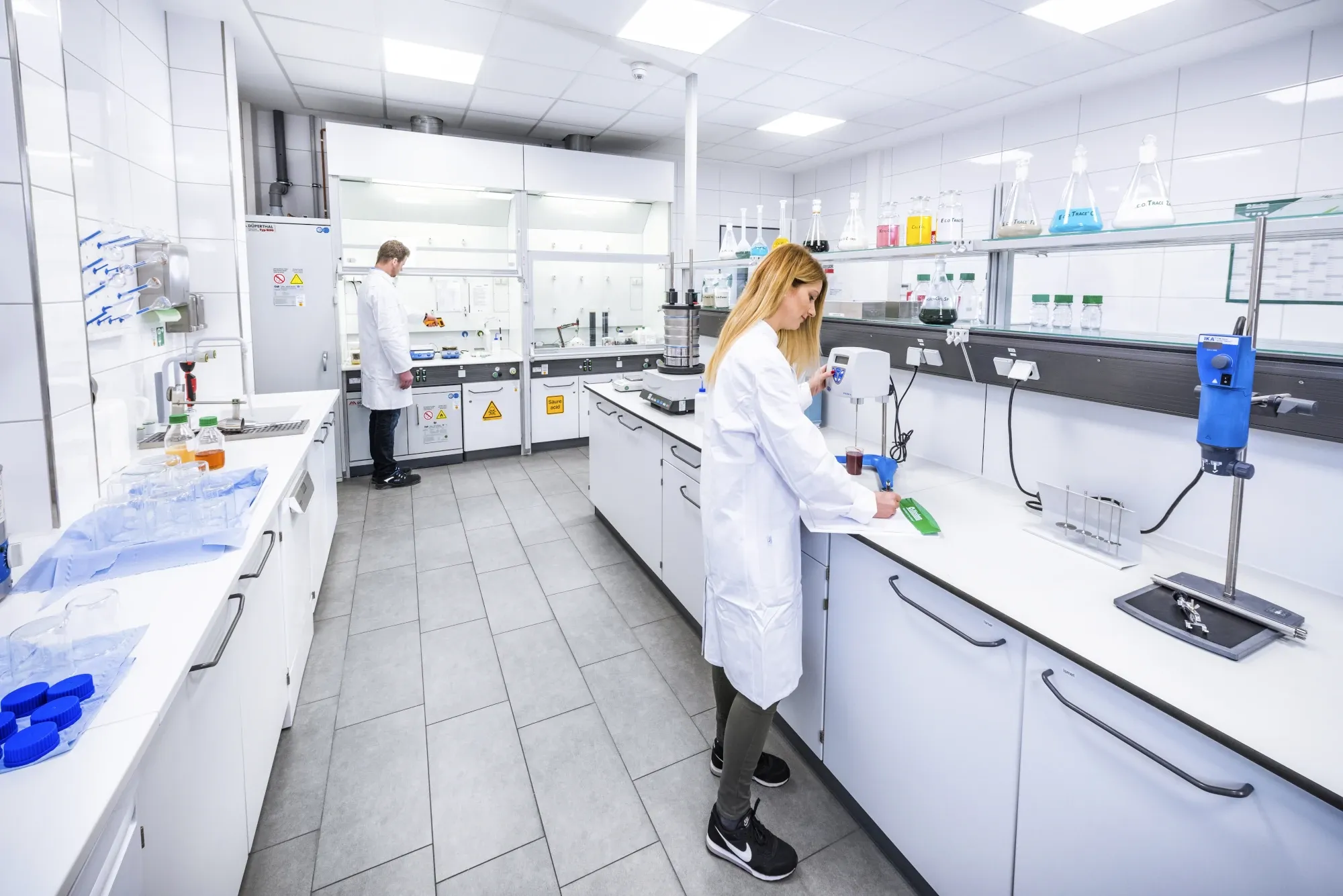 Our state-of-the-art filling equipment ensures a flexible and seamless production process. We produce highly effective products that can be filled in container sizes ranging from a 100 g sachet all the way up to 1,000 kg big bags. Our new automated liquid filling system, various label printing and dispensing systems for different custom labels/packaging, and new blending equipment for batch sizes up to 6,000 liters make our production fit for the future—without compromising safety or quality.